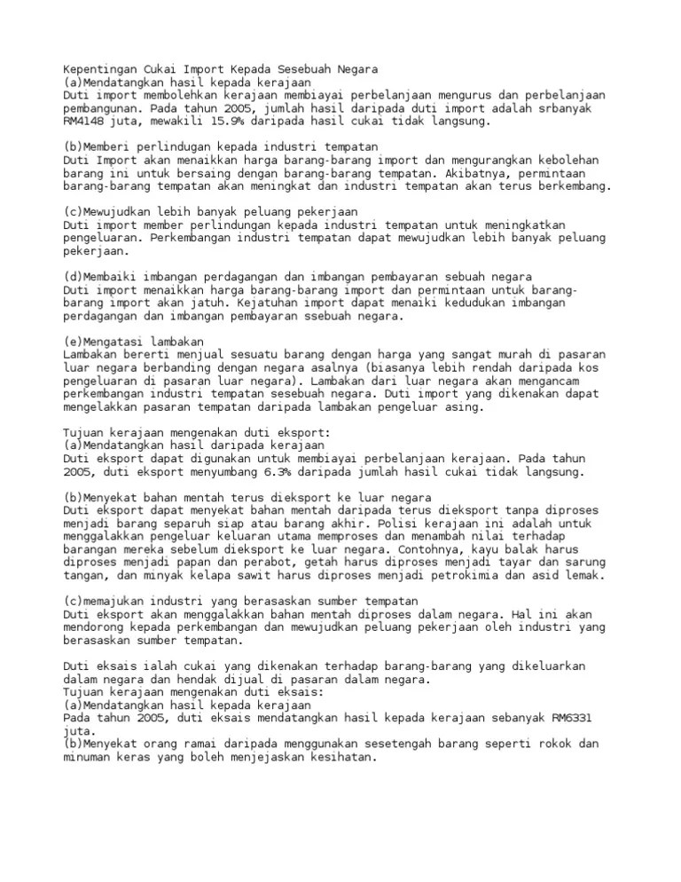Doc peranan dan kepentingan cukai pendapatan kepada negara hajar . Duti import membolehkan kerajaan membiayai perbelanjaan mengurus dan . Nurhajariah binti ismail dtp 3 . Cukai yang di kutip ini dibelanjakan oleh kerajaan bagi tujuan secara ringkasnya, cukai ialah kunci kepada pentadbiran negara .